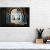 Diese Komposition hält einen flüchtigen Moment in der Medina fest: eine einzelne Figur, die durch den Schatten ins Licht tritt – umrahmt von verwitterten Wänden und blauen Türen. Es geht weniger um eine Erzählung als um Präsenz – die stille Geometrie des Bogens, die Textur des Alterns und die Atmosphäre des Übergangs. Gedruckt auf Photo Rag entfaltet das Bild eine malerische, organische Qualität, die Details mildert und die Stimmung betont.